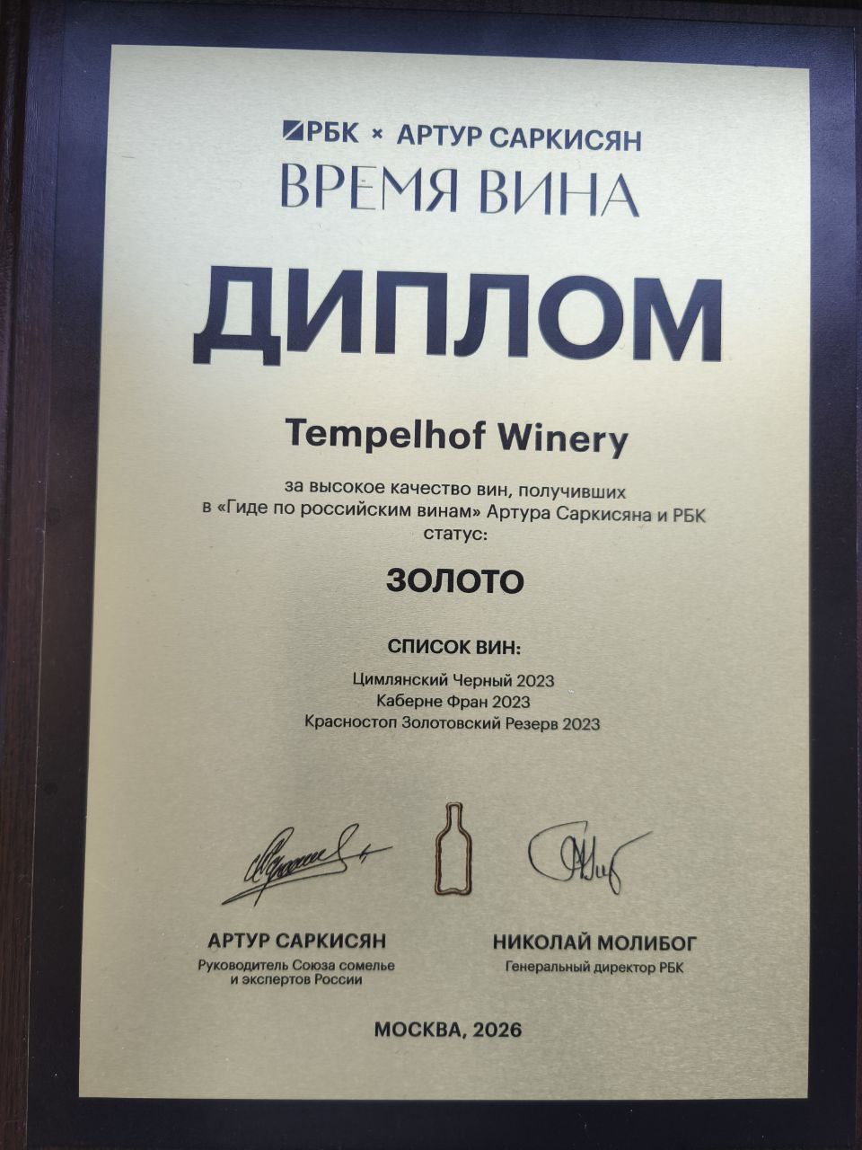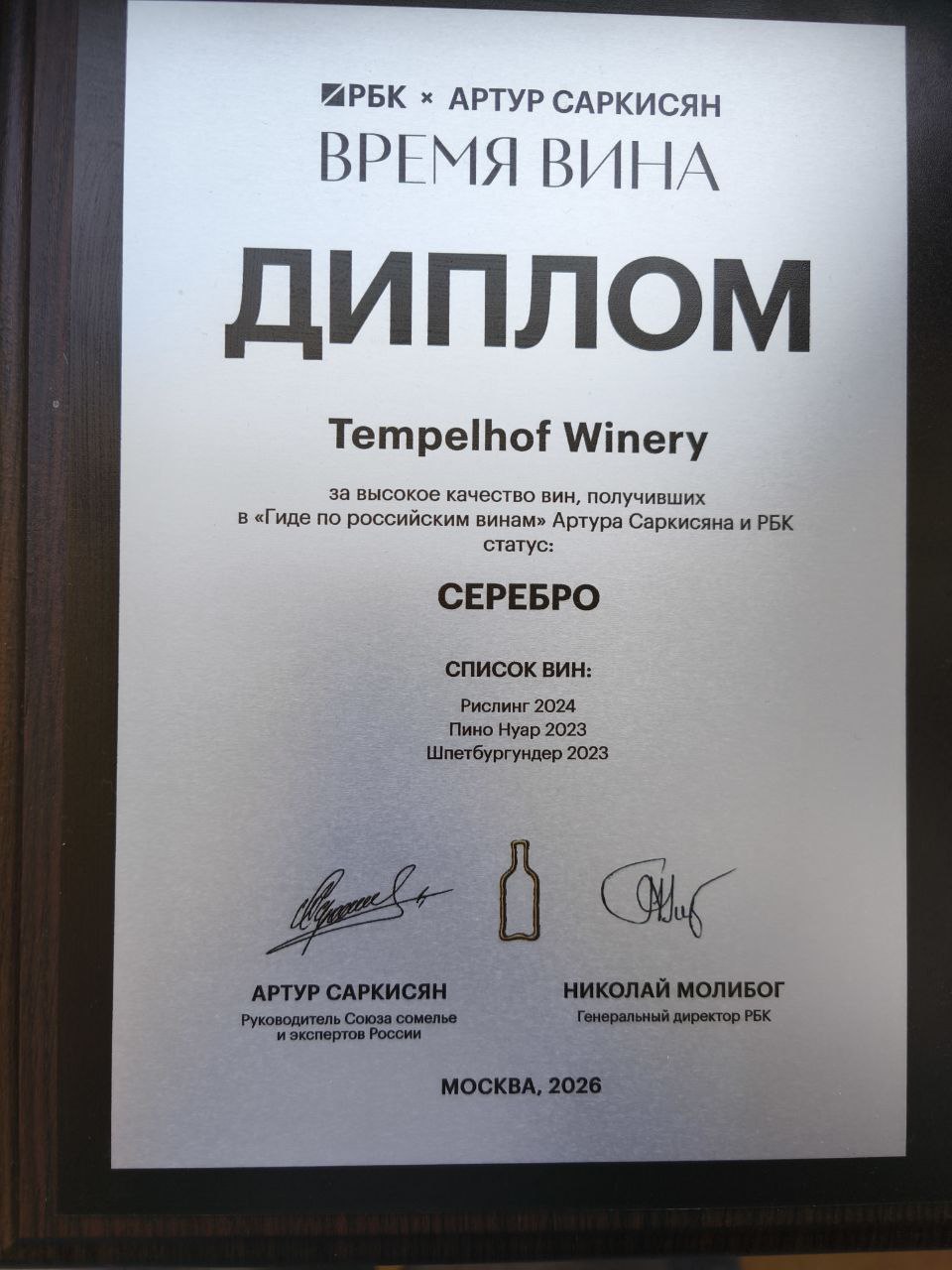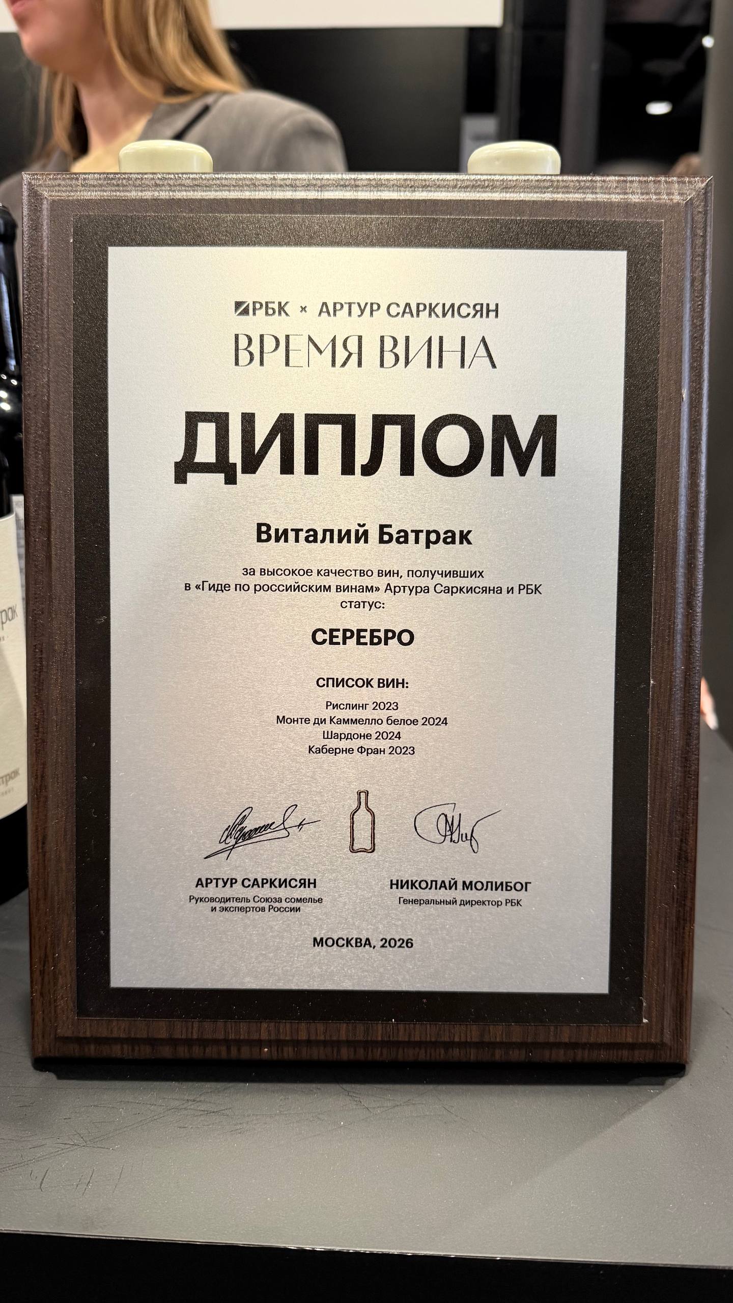 Среди представленных винодельней «Марко» образцов присутствовали Ассамбляж 2023 года, Каберне Фран 2024 года, Ркацители 2024 и Мари 2023 года. Не отстала от своих коллег и винодельня «Tempelhof Winery». На Винном гиде она представила Цимлянский Черный 2023 года, Каберне Фран 2023, Крансостоп Золотовский Резерв 2023, Рислинг 2024, Пино Нуар 2023 и Шпитбургундер 2023 года. Первые три вина из списка от винодельни «Tempelhof Winery» смогли получить золотой диплом, а вторые три – серебряный. Победу на Винном Гиде Артура Саркисяна одержала и винодельня «Виталий Батрак». Диплом за высокое качество вин со статусом «Серебро» получили Рислинг 2023, Монте ди Камелло белое 2024, Шардоне 2024, Каберне Фран 2023.
